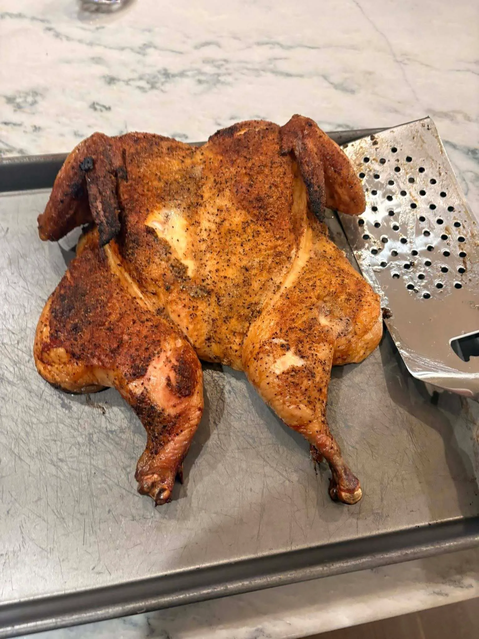 This week’s Smoke Show Champ is David Fritsche for his spatchcock chicken. That bird lived a good life and finished strong. Shared via the Dead Meat Society Facebook Group.